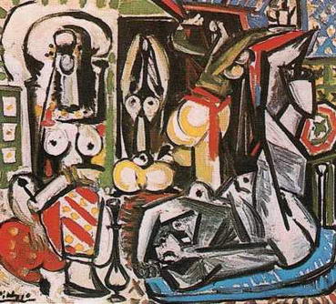 "Алжирские женщины" работы Делакруа (слева, 1834, Париж, Лувр) - одна из картин, из которых Пикассо черпает вдохновение для своей серии "Подражаний", приближающей его к мастерам прошлого, от Эль Греко до Мане и Ван Гога. "Алжирские женщины" (подражание Делакруа), написанные в 1955 году, на иллюстрации справа.