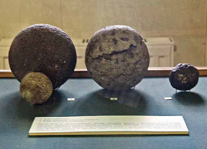 Поначалу в качестве снарядов для пушек использовались каменные ядра. Довольно много таких ядер и сегодня находят археологи и строители при ремонте брусчатки на Красной площади, при археологических раскопках в районе Китайгородских стен, Земляного вала и в других местах. И лишь много позже ядра стали лить из железа. Довольно долго практиковались и снаряды, изготовленные по «переходной» технологии: каменное ядро обливалось свинцом и в таком виде использовалось в качестве артиллерийского снаряда. Появившиеся позже железные ядра выковывались на наковальнях, а потом вытачивались на точилах. Для поджигания деревянных построек и укреплений неприятеля перед самим выстрелом ядра докрасна калили в специальных горнах и обматывали тряпьем.