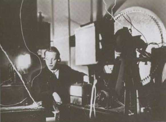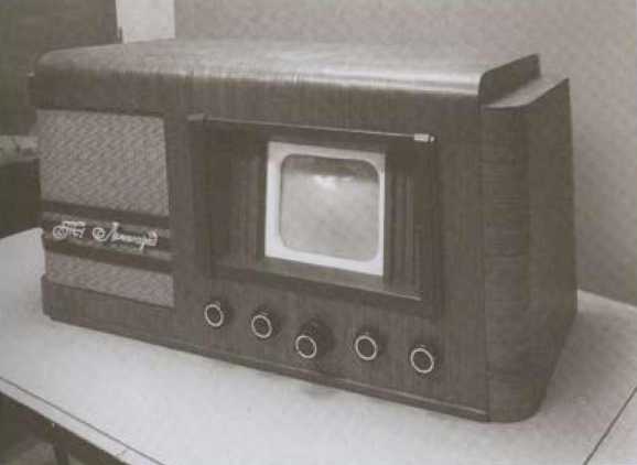 А. А. Расплетин за настройкой телевизора с линзовым диском.