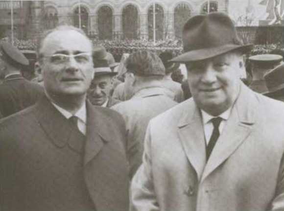 B. П. Чижов и А. А. Расплетин среди приглашенных на парад на Краской плошали. 1 мая 1966 г.