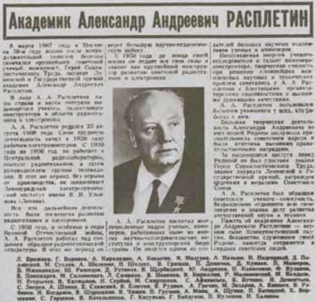 Монография о А. А. Расплетине, изданная к его 105-летию, по заказу Вневедомственного экспертного совета по проблемам воздушно-космической обороны.