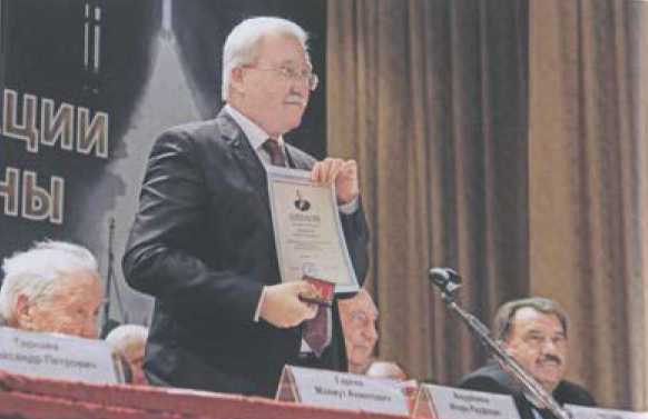 Генеральный директор ОАО «ГСКБ «Алмаз — Антей» И. Р. Ашурбейли вручает Я. А. Писаренко диплом лауреата премии им. академика А. А. Расплетина, учрежденной на предприятии.