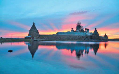Я помню время, когда на Соловках не было аэродрома. Из Архангельска сюда ходили два пассажирских судна. Я бы даже сказал, лайнера, по-моему, немецкой постройки. Татария и Буковина. С баром, рестораном, танцполом. Шли корабли, ночь. Мы устраивались в каютах команды за разговор и портвейн. На рассвете все пассажиры собирались на палубе и ждали появление монастыря. Солнце светило уже вовсю часов в пять. Белое море было белым. Каменные, выложенные из булыжника стены монастыря появлялись вдруг. Часто бывало, что монастырь солнце освещало, а небо было затянуто черными тучами. Монастырь светился на черном фоне.