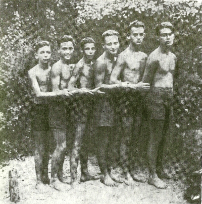Волейбольная команда. Первым стоит С. Гудзенко. Артек, 1938 г.