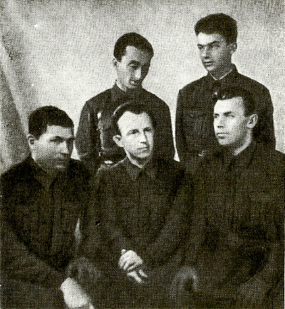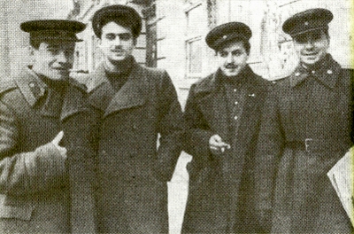 Фронтовые друзья. Наверху, второй слева направо Семен Гудзенко. 1942 г.