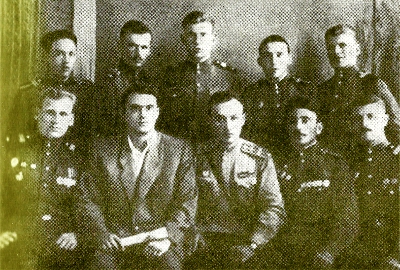 «Ребята из газеты „Родина зовет“», — написал С. Гудзенко на обороте этой фотографии, присланной матери. 1945 г. (Второй слева С. Гудзенко).