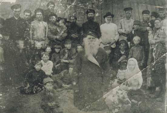 Односельчане. На первом плане — бывший бурлак Иван Макарович Беспалов по прозвищу Большой. Фото начала XX в.