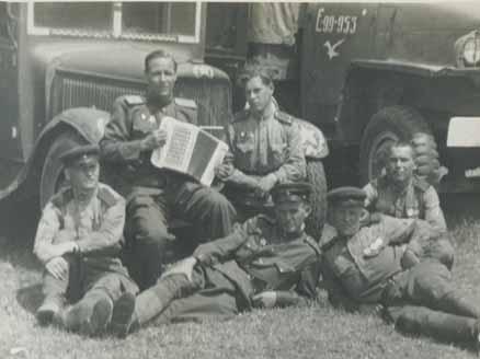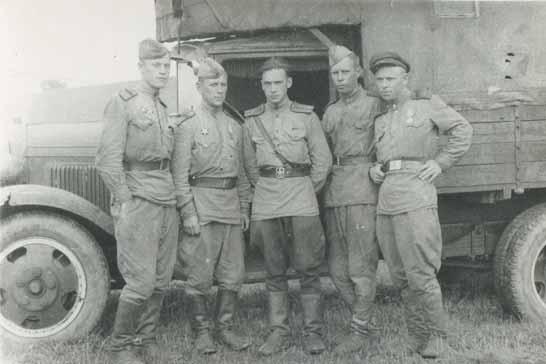 Боевые друзья провожают своего сослуживца с фронта на учебу, в Ленинград. Апрель 1945 г.