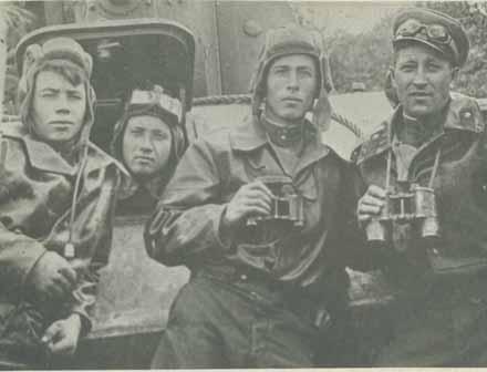 У боевой машины. Слева — лейтенант К. Яшин, в центре — лейтенант С. Голубев.