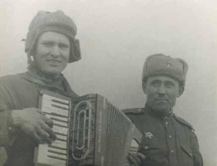 Командиры САУ Василий Яковлев и Георгий Данциг (в ноябре 1944 г. тяжело ранен и умер в госпитале г. Перечни недалеко от Ужгорода).