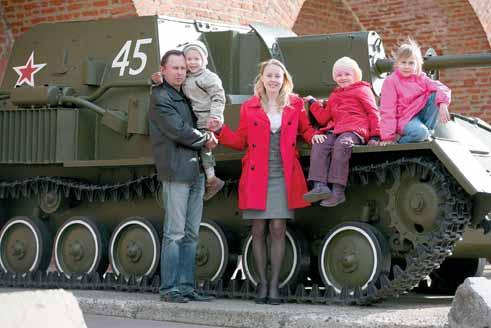Внуки и правнуки у САУ-76. На таких воевал их прадед. Слева направо: внук Алексей, правнук Иван, внучка Ирина, правнучки Полина и Милена.