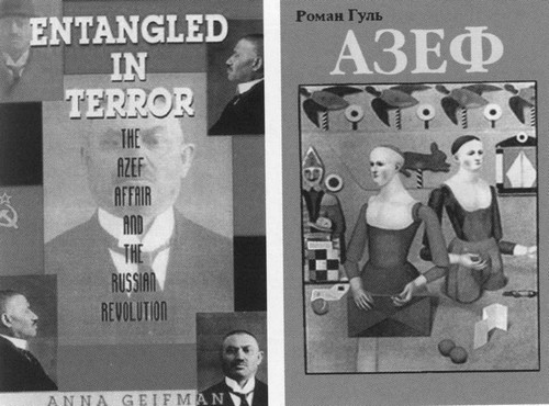Обложки американского издания книги Анны Гейфман «В сетях террора. Дело Азефа и русская революция» и русского издания книги Романа Гуля «Азеф»