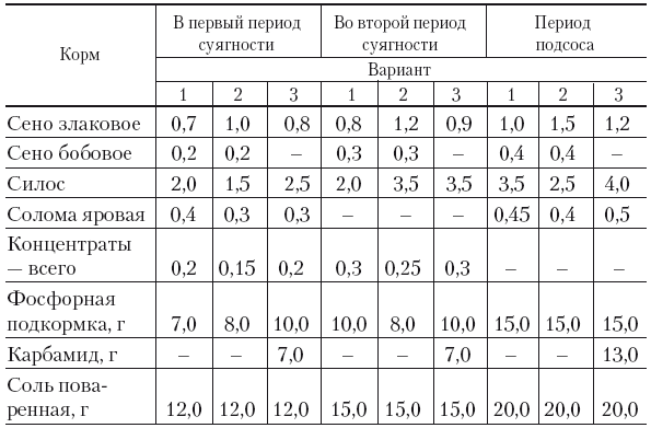 Примерные рационы овец, разводимых в Сибири, кг