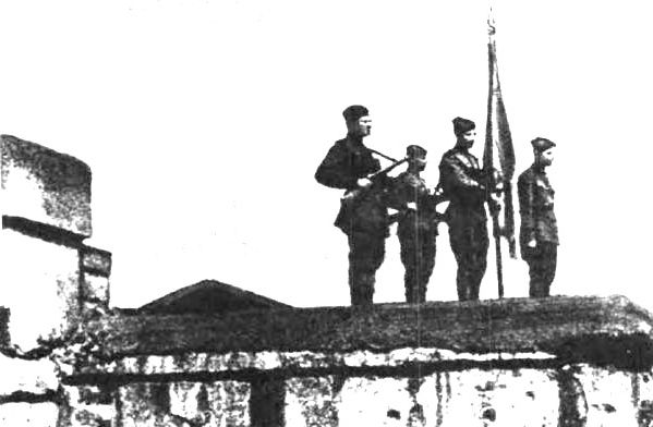 Здесь летом 1941 года сражались советские воины, защищая свое Отечество. 28 июля 1944 года. Над крепостными фортами вновь реет Красное знамя.