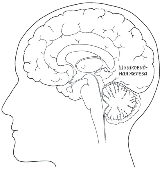 Рисунок 4. Правое полушарие в разрезе. Шишковидная железа, также называющаяся эпифизом, находится прямо на центральной линии