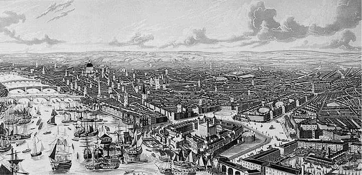 Вид на Лондон и Темзу. Акватинта Р. Хейвелла, 1836 г.