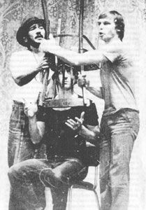 Еще одна сцена из спектакля "Не покидай пеня, весна" в "Третьем направлении". Студия прекрасно работала на материале авторской песни. Этот эпизод – песенка Ю.Кима о М.Русте: "…И бедовый, и не трус, и сидит в кутузке".