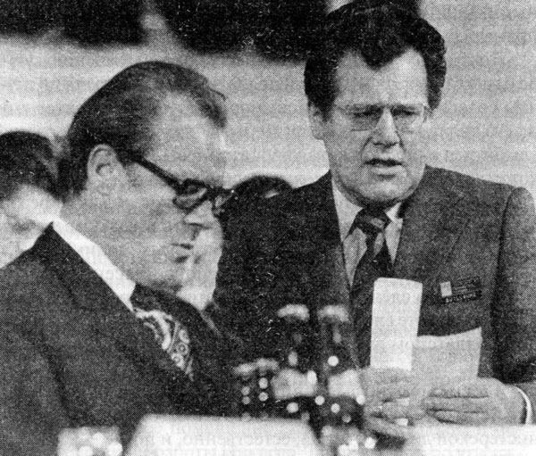 Вилли Брандт (1913–1992) с умершим в 1995 г. шпионом ГДР Гюнтером Гийомом (на фото справа). С 1972 г. Гийом являлся личным референтом Брандта. Его арест в апреле 1974 г. привел к отставке Брандта с поста Федерального канцлера (6 мая 1974 г.)