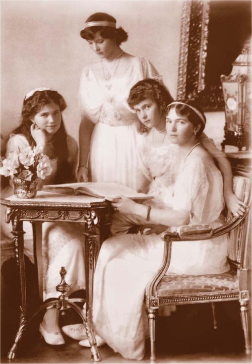 Великие Княжны Мария, Татьяна, Анастасия и Ольга Николаевны (слева направо). Санкт-Петербург, 1914 г.