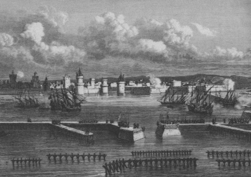 Порт Ла-Рошели в начале XVII века. Гравюра Лара по оригиналу Ториньи. Около 1850 г.