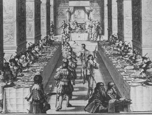 Пир, данный королем новым рыцарям Ордена Святого Духа 14 мая 1633 года в Фонтенбло. Гравюра А. Босса. Первая половина XVII в.