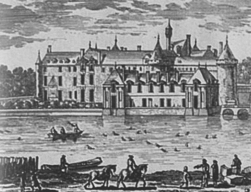 Замок Шантильи, где 15 марта 1635 года был впервые исполнен Мерлезонский балет. Гравюра А. Переля. XVII в.
