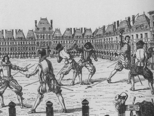 Дуэль на Королевской площади. Гравюра первой половины XVII века.