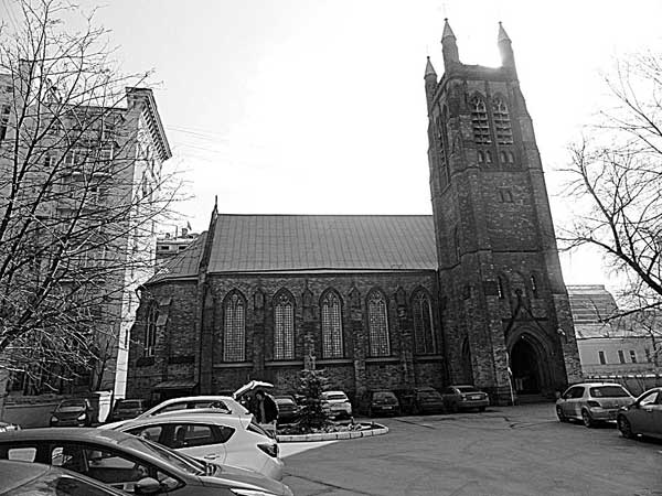 Примечательно, что потомки знаменитого шотландца не являются единственными представителями туманного Альбиона, обосновавшимися по прихоти судьбы в этом московском закутке. Недалеко от усадьбы Брюсов по нечетной стороне домов этого переулка находится Англиканская церковь (дом № 5). Правда, она выходит на Брюсов переулок только своим южным фасадом, а северным – главным – на соседний Воскресенский. Англичане, работавшие в Москве, в 1828 году в складчину выкупили у прапорщика Наумова принадлежащий ему участок земли, и построили на этом месте «британскую часовню». Позднее британской общиной в Москве было принято решение опять же на добровольные пожертвования построить настоящую церковь в стиле поздней английской неоготики, которая была построена и освящена в 1885 году во имя святого апостола Андрея, первосвятителя Шотландии: подавляющее большинство британской колонии в Москве в те годы составляли выходцы из Шотландии.