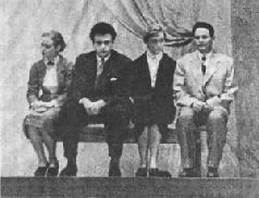 Сцена из спектакля Студенческого театра МГУ "Такая любовь": Ия Саввина, Зиновий Филлер, Алла Демидова – все трое станут известными профессиональными актерами, а пока – студенты. Справа – их партнёр, не ставший профессиональным актёром, Виктор Калинин.