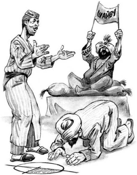 «Он нарисовал тарелку каши, — поведал Ходжа, — и хотел всю ее съесть сам. Но я предложил поделить ее пополам, ему и мне поровну. А он показал, что мне он отдаст только четверть. А я показал, что не согласен. А чего он повалился мне в ноги, я не знаю».