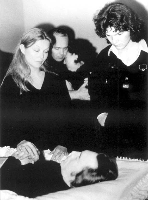 Первую панихиду отслужили в подъезде дома, где жил Высоцкий. Присутствовали родные и близкие. Из Парижа прилетела его вдова Марина Влади. Евгении Степановны не было: после получения известия о смерти горячо любимого ею пасынка у нее случился сердечный приступ. На фабрике спецзаказом был изготовлен гроб, обитый, как сообщалось, «вместо традиционного красного полотна белой материей, которой обивали только правительственные гробы».