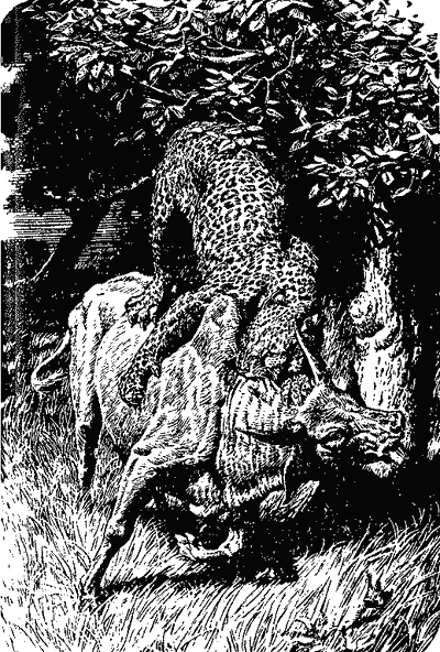 Наутро, только рассвело, мы с большой осторожностью подошли к трупу и были разочарованы, заметив, что леопард к нему не возвращался. Мы ведь считали, что он должен это сделать, после того как ему не удалось схватить одного из нас накануне.
