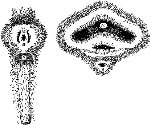 АС – анальная сумка, ЗП – задний проход, М – мошонка, П – пенис, В – влагалище