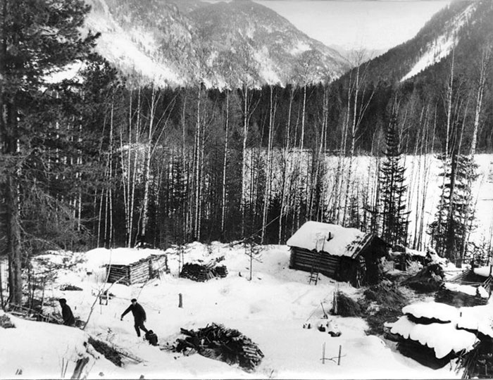 В 16 часов взят курс на Киленское. Вертолет делает круг между гор, мелькает изба Агафьи с красным флагом на ветру. Идем вдоль Абакана к Каиру. Через несколько минут внизу обозначились оставленные уже геологами домики Волковского участка. Грустное впечатление производит заброшенный поселок. Видны только следы зверей.