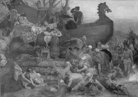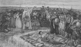 По мотивам рассказа Ибн Фадлана о встрече с русами в 921 году. (Г. Семирадский)