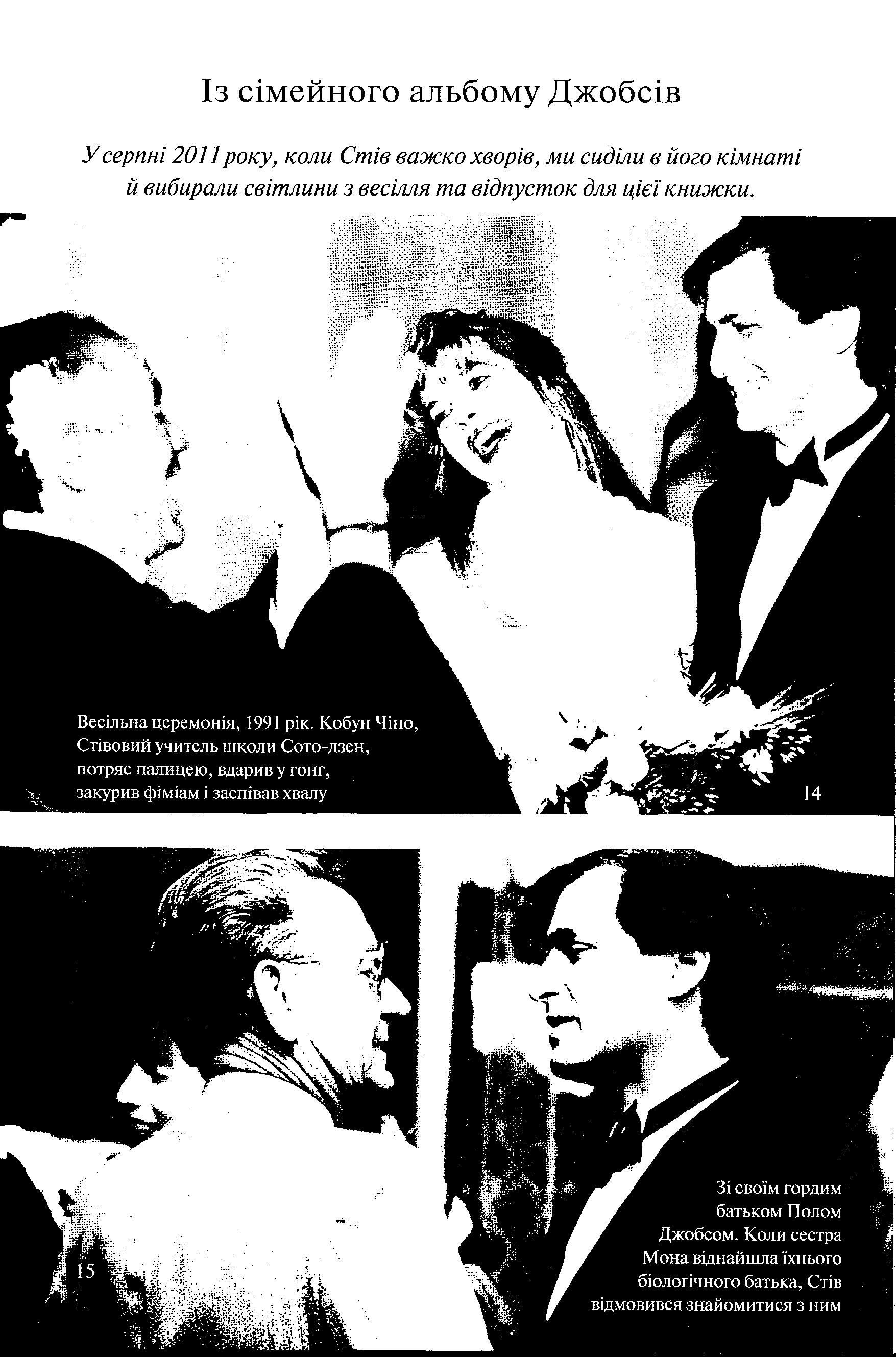 З сімейного архіву Стіва Джобса: ілюстрації на вставці: №14, 15, 17, 18, 19, 20, 21, 22; сторінки книги: 20 (горішня ліва і нижня права), 130, 270, 286, 314.