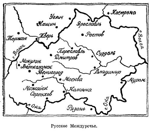 Делится между ними и княжество Московское, но уже не поровну и не целиком. Дмитрию, как старшему в роду, по обычаю завещаются два важнейших после Москвы города — Коломна и Можайск с окрестными волостями, селами и деревнями. Можайск стоит у верховьев Москвы-реки, на западе, а Коломна — у ее устья, в юго-восточном углу княжества, и таким образом все оно, как крепким поясом, препоясано течением реки с притороченными к берегам волостями. Правда, в одном месте, возле Звенигорода, этот пояс как бы надставлен куском из другого материала, потому что сам Звенигород и прилежащие к нему волости завещаны младшему брату Дмитрия. От них обоих зависит, быть ли поясу крепким на разрыв. Владимиру переходят земли, принадлежавшие его отцу. Часть Владимировых волостей кустится к северо-востоку от Москвы, за Клязьмой, по ее притокам, а другая часть, большая, — на юге княжества, по-над Окой, по берегам Нары да Протвы.