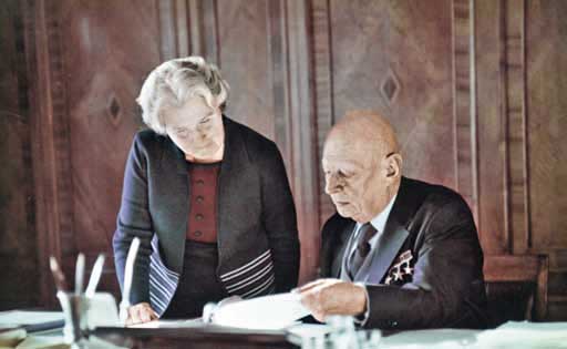 Работу в секретариате Александрова трудно назвать пустяковой. Неподготовленный человек с ней бы не справился. Но Нина Васильевна была из другого теста, как говорится старой закалки, поэтому при ней порядок был образцовым. Вялкова не раз признавалась, что каждый день на работе был сродни боевым действиям и год в секретариате АП надо было засчитывать за три. Помимо своего обычного распорядка: совещаний, приемов и научной работы, Анатолий Петрович находил в себе силы помогать совершенно незнакомым людям, встречаться с журналистами и сценаристами кинофильмов, читать лекции, писать поздравления, готовить тексты своих речей и посещать премьеры в театре! Секретари, которые вели его распорядок, работали, словно на минном поле. Составлять такое расписание было непростой задачей. Приемная АП напоминала одновременно и командный пункт, и кабинет психолога: некоторые посетители приходили и за информацией, а некоторые – просто выговориться, иногда заходили даже за медицинской помощью! С таким ритмом на работе приходилось буквально жить. Собственно, так эти отважные женщины и поступали. Поэтому в шкафчике на всякий случай всегда лежал комплект одежды и сменной обуви.