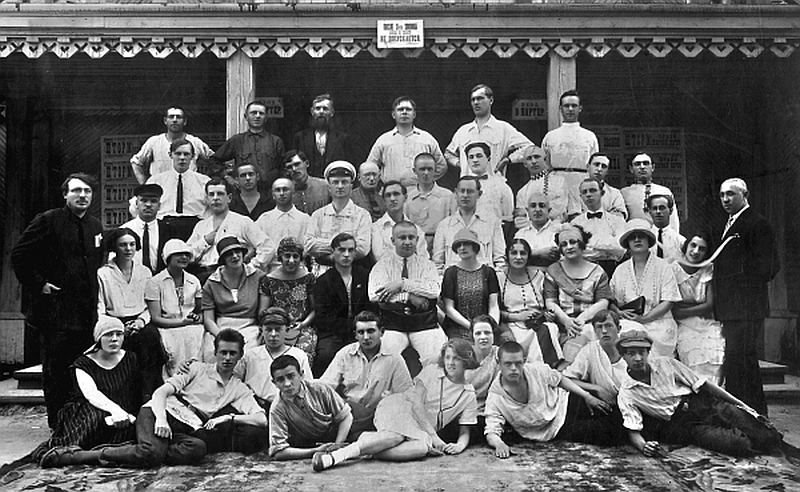 Гастроли театральной труппы в Архангельске. Во втором ряду слева направо сидят: Ф. Г. Раневская (третья) и П. Л. Вульф (седьмая). 1926