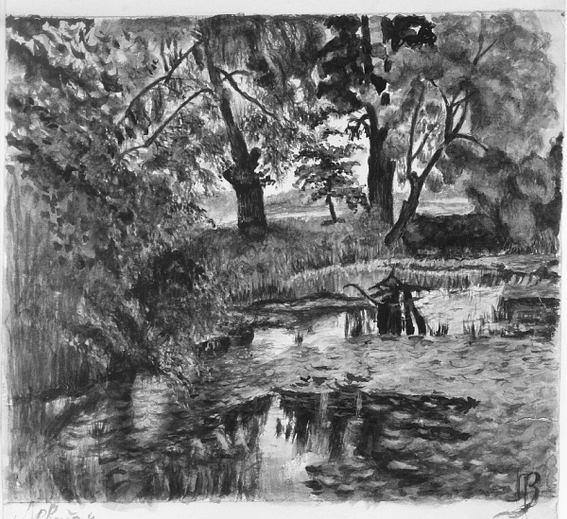 Заглохший пруд. Акварель