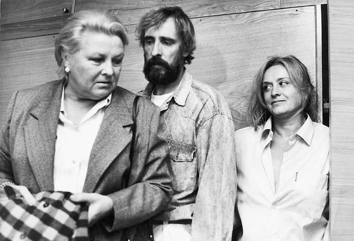 С Лембитом Ульфсаком (муж Риты) и Вией Артмане (свекровь Риты). Кадр из фильма «Только для сумасшедших, или Сестра милосердия». Режиссер Арво Ихо, 1991 г.