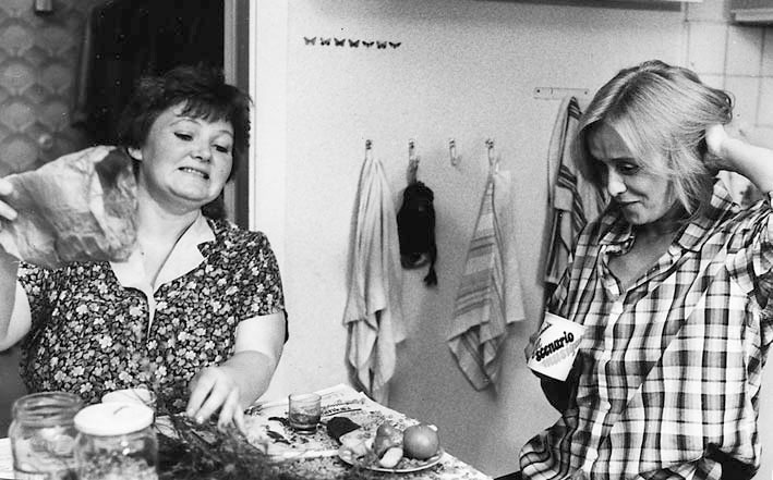 Сцена с соседкой. Кадр из фильма «Только для сумасшедших, или Сестра милосердия». Режиссер Арво Ихо, 1991 г.