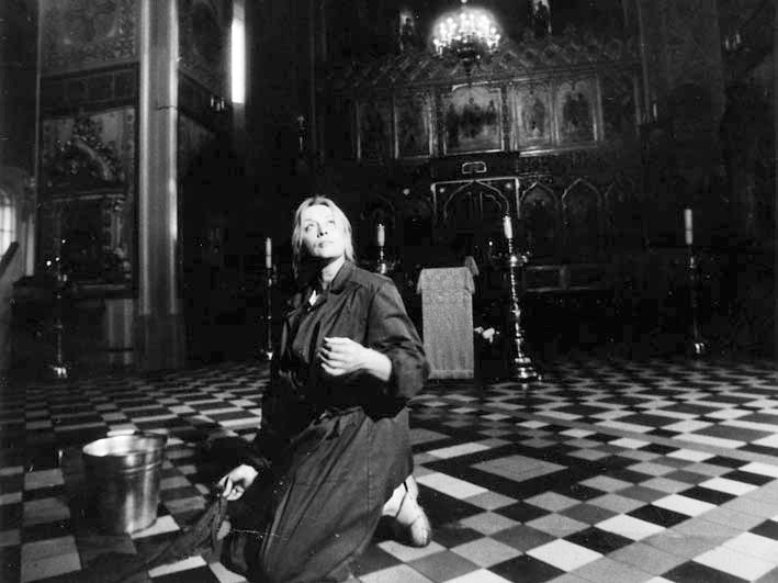 Съемки сцены к/ф «Только для сумасшедших» в Таллине в соборе Александра Невского, 1991 г.
