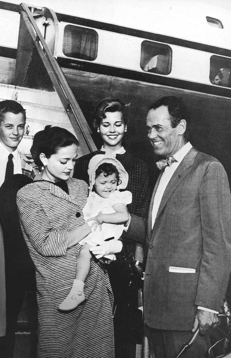 Питер, Сьюзен с Эми на руках, я и папа на пути в Рим, где он снимался в “Войне и мире”. Середина 1950-х гг.