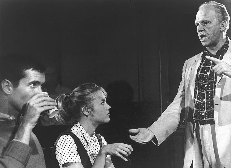 Режиссер Джош Логан что-то объясняет нам с Тони Перкинсом во время съемок “Необыкновенной истории”. 1960 г.
