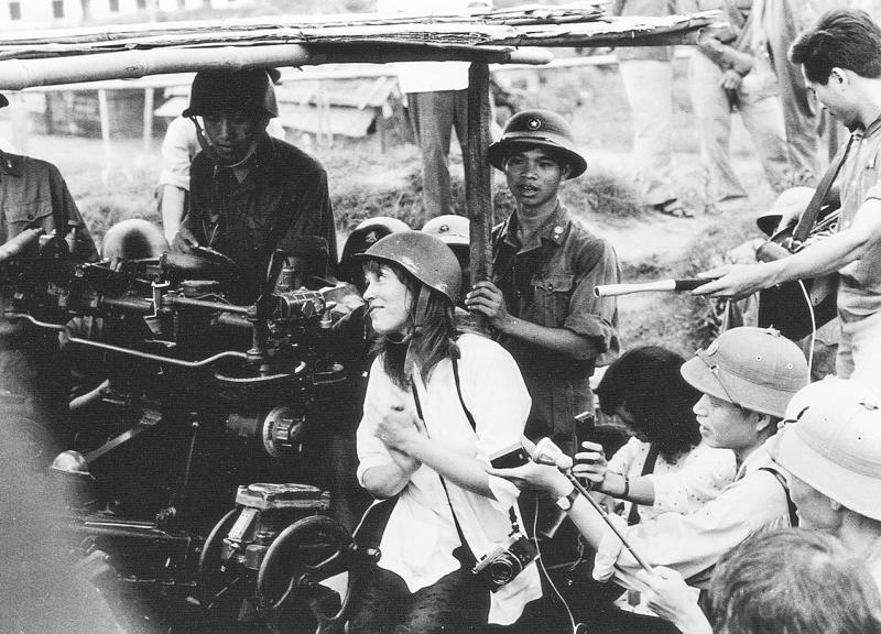 На пресс-конференции в Париже; я указываю на кадр с двумя военнопленными из числа тех, с кем я беседовала во Вьетнаме.