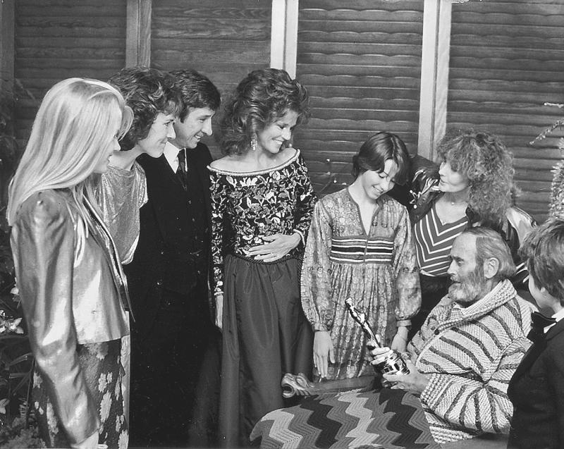 Я только что вручила папе статуэтку “Оскар”. Слева направо: Бриджет Фонда, Эми Фонда, Том, я, Ванесса, Шерли, Трой (спиной к камере).