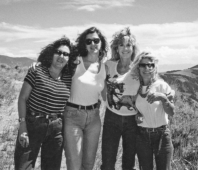 Слева направо: Лоис Бонфильо (моя напарница по продюсерской работе, сменившая Брюса), Пола Вайнштейн, я и Бекки Фонда – на нашем ранчо “Бар-Нан”.