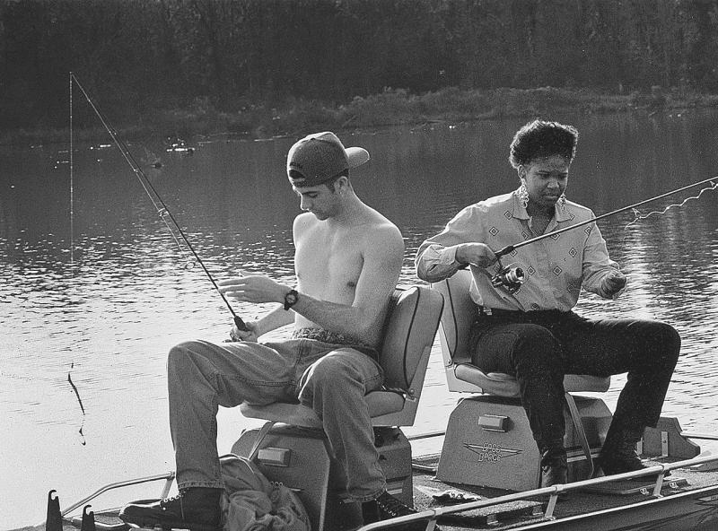 Трой и Лулу ловят окуней в Авалоне. 1990-е гг.