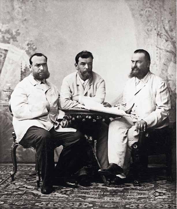Н. Е. Жуковский со своими братьями Валерианом Егоровичем и Иваном Егоровичем. 90-е годы XIX века.